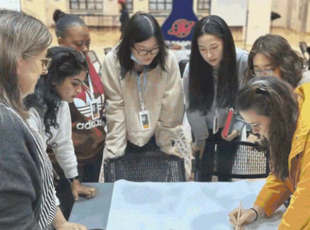 老师们打破学部与学科的界限,围坐在一起,对关键问题展开讨论,深入分析教学策略、技巧和运用工具。他们将示范课中的亮点设计成海报,供其他小组“走访”,了解各学部的优秀教学实践。爱动脑的大朋友们纷纷提出了宝贵的建议,学习氛围浓厚。