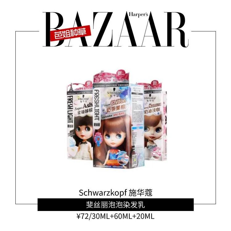 施华蔻泡泡染剂色泽丰富,无论你喜欢经典色还是流行色,都可找到心仪之选。泡沫质地便于操作,在家就可DIY。