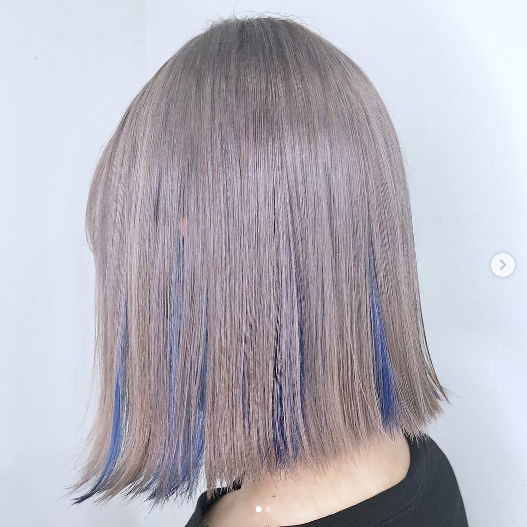 蓝色是今年的流行色,运用到发色中也是赶时髦。在头发表面保持深或浅发色,而内部则染出显眼蓝色,看起来就像是把星空藏在了头发里,太梦幻了。
